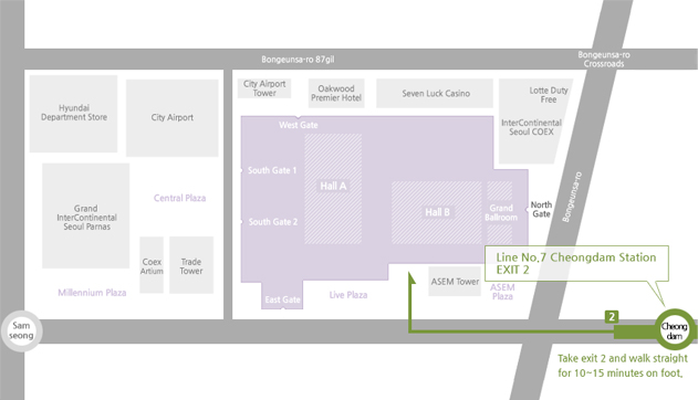 · Destination : Coex (Line No.2, Samseong station, Exit 7)